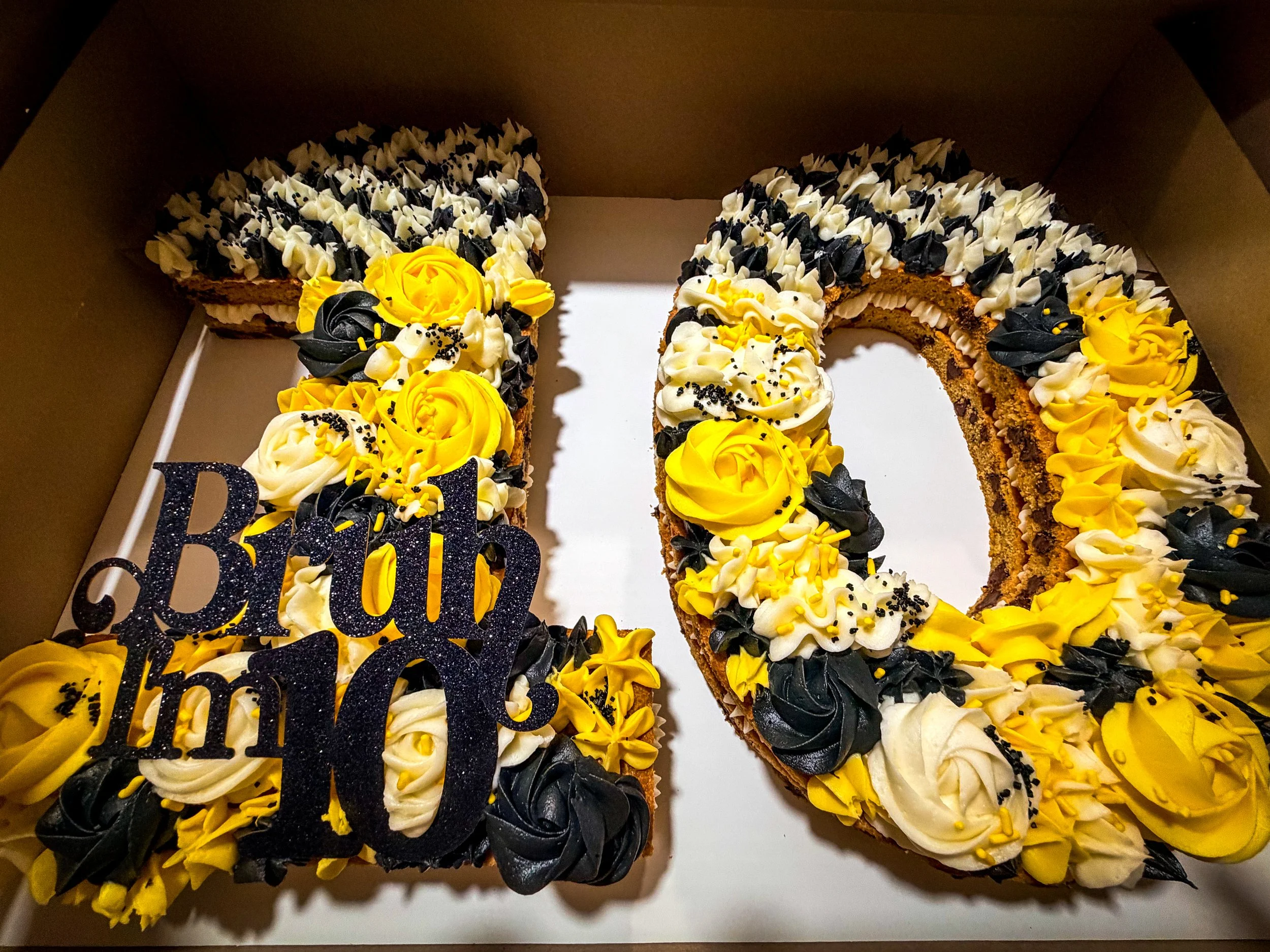 Custom cookie cakes are available in many sizes and and shapes. Choose from any of our cookie flavors.